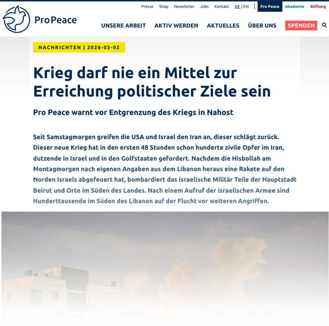 s. dazu die Stellungnahme von ProPeace vom 2.3.2026: "Krieg darf nie ein Mittel zur Erreichung politischer Ziele sein"