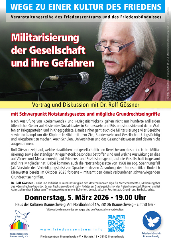 Ein Großteil der Veranstaltungen wurde aufgezeichnet und ist im youtubekanal des Friedenszentrums zu finden ( www.youtube.com/@friedenszentrumbraunschweig )