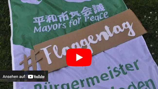 Am 8. Juli jedes Jahres setzen bundesweit Bürgermeister und Bürgermeisterinnen vor ihren Rathäusern ein sichtbares Zeichen für eine friedliche Welt ohne Atomwaffen.