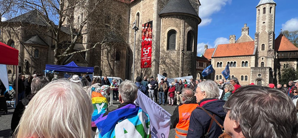 zuerst herzliche Grüße von den Braunschweiger Friedensfreunden, die zur Stunde durch die Braunschweiger Innenstadt demonstrieren. Wir haben vor kurzem die 17-tägige Werbeshow der Bundeswehr mit Gegenöffentlichkeit begleitet. Mit vereinten Kräften, Jung und Alt waren wir jeden Tag präsent, haben gegen „das Werben fürs Sterben“ demonstriert, auf Alternativen zu Aufrüstung und Krieg aufmerksam gemacht und fanden neben blöden Sprüchen auch viel Zustimmung. Aktive junge Leute aus der Schulstreik-Bewegung und aus Jugendverbänden haben für ein deutlich jüngeres Durchschnittsalter bei diesen Aktionen gesorgt. Das macht Hoffnung.